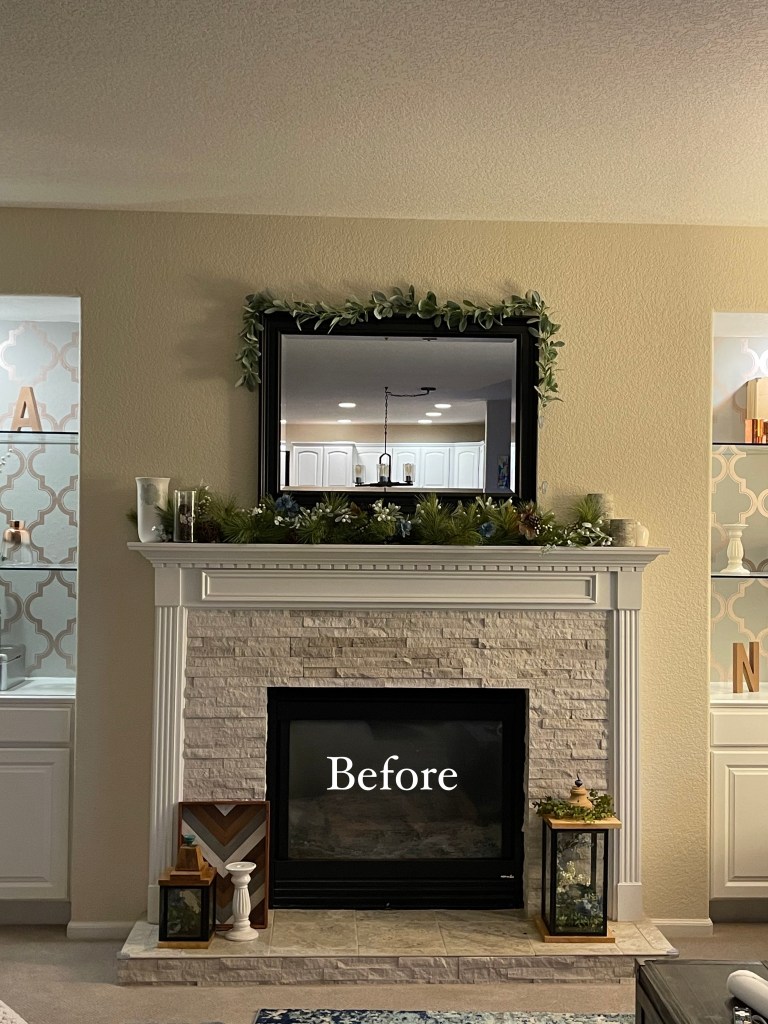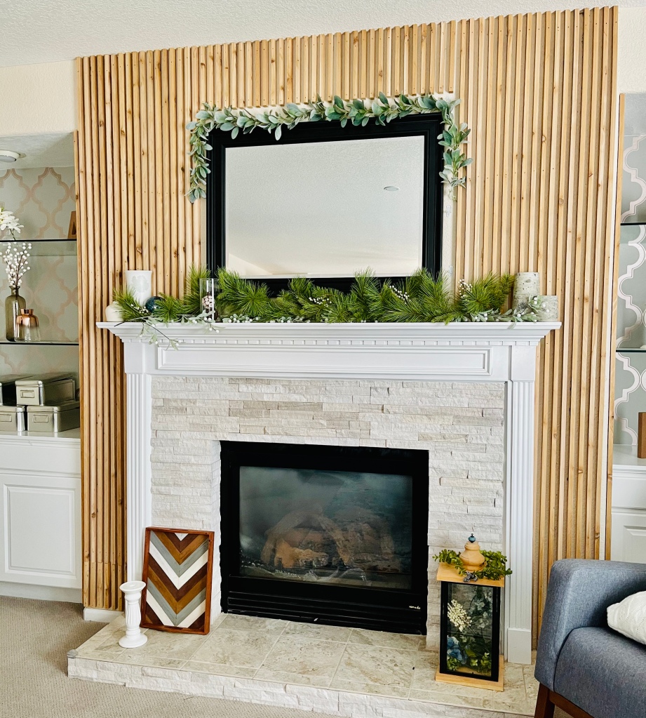 Our living room felt really empty and boring. It was painted all white including the fireplace so everything blended together. We were looking for a way to bring it to life and give it more character without making it cluttered and still keep it bright. I love adding texture to walls to make it pop. A great way to do this we thought was adding wood slats to the fireplace wall. The fireplace is such a focal point and we thought this would be a way to make it stand out amongst the white walls. I love shiplap and we have done shiplap projects before. This time we wanted to try something a little different so we decided wood slats would be a great alternative and a modern look.