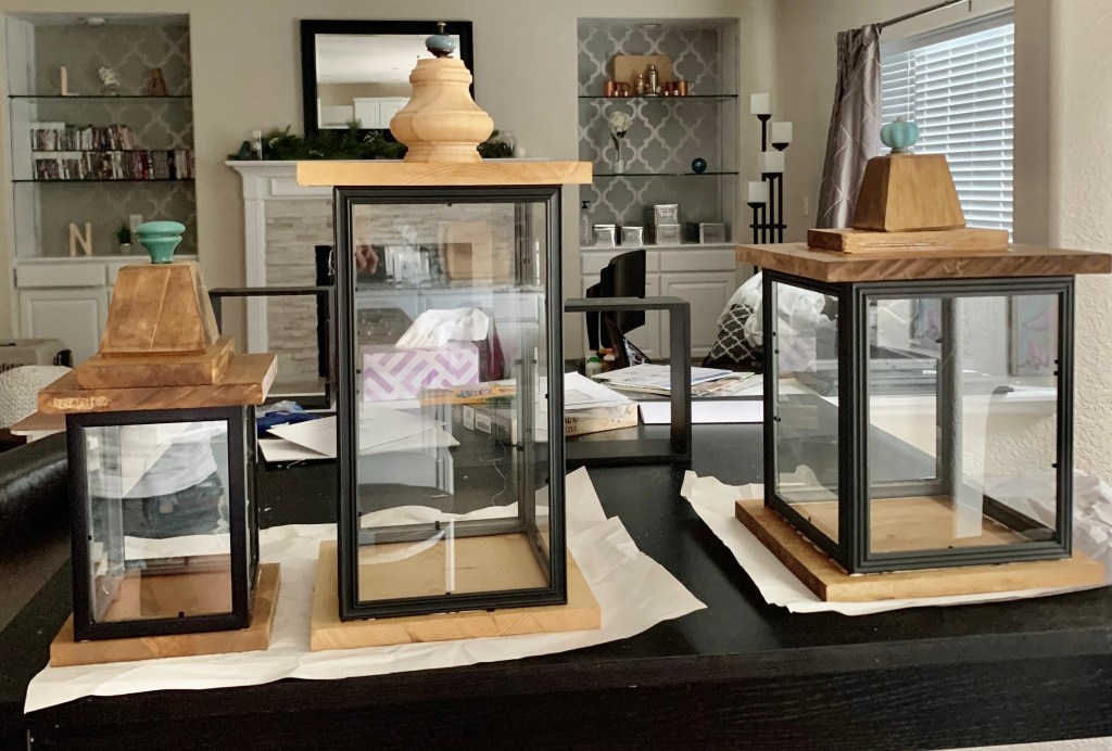 I wanted to decorate our fireplace and fill in some of the empty shelves in our living room. I really love when you can create your own home décor and thought it would be an easy project to make different sized lanterns to decorate and fill in some empty spaces. The lanterns turned out to be great décor items that I could decorate for any season. I made three lanterns. One Tall, one Medium and one Small. Here is how I made them