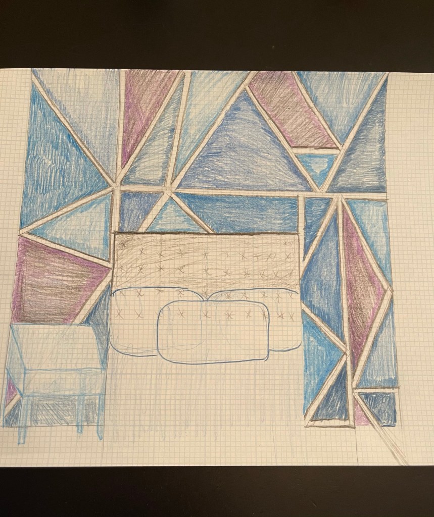 Here is what I was initially planning on doing but after consulting with my husband I am thinking of going with a more simple design with less shapes. I will let you know in some future posts how it turns out.