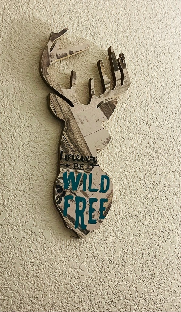 The item that inspired my theme for this room was the deer wall art above the bed. The turquoise color inspired my theme of Hipster Cabin.