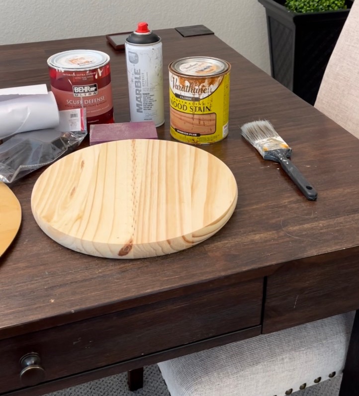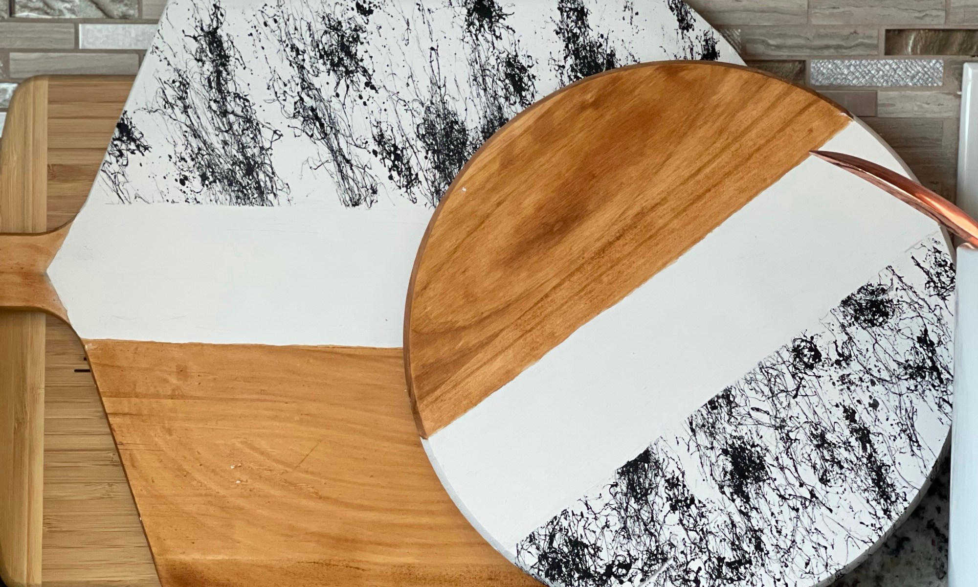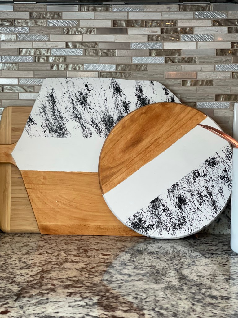 I found this Wood Serving Board at an Estate Sale and I thought it would be perfect to transform into a Decorative Kitchen Item. I love the marble look so I wanted to incorporate it into the item as well.