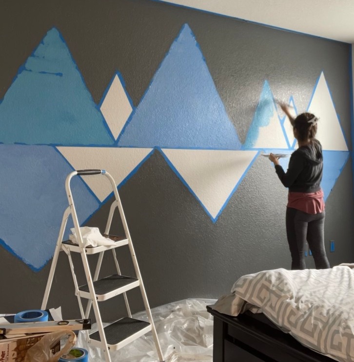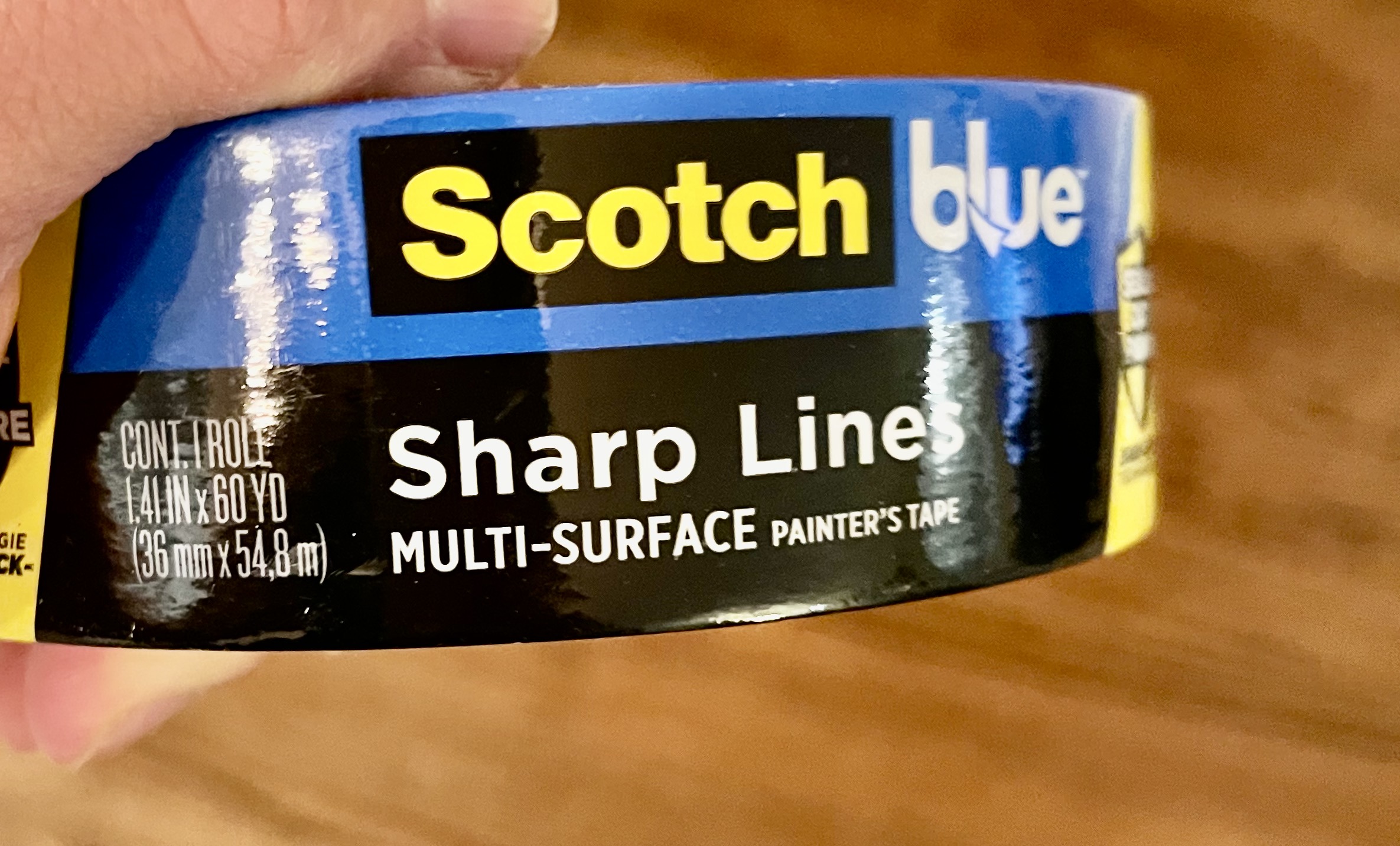 If you are painting a design such as I did on the DIY geometric wall you want to use special tape to create the design. I used Scotch sharp lines tape. This type of tape creates cleaner lines. I have found that there are less air pockets so less paint tends to fall in the taped off areas compared to just regular painters tape. Frog tape also makes a line of sharp lines tape that I have heard good things about but I haven’t tried it yet.