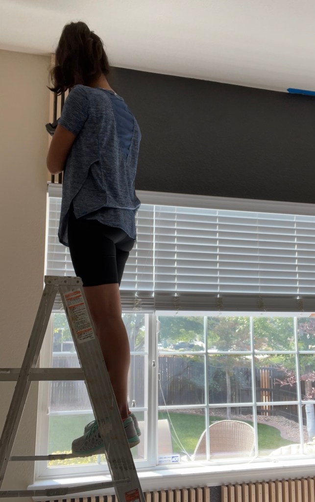 Once we started nailing in the wood slats we realized they were not going to hold so we decided to install support beams on the ceiling to nail the wood slats into. In order to make the beams secure I drilled three anchors into the ceiling.