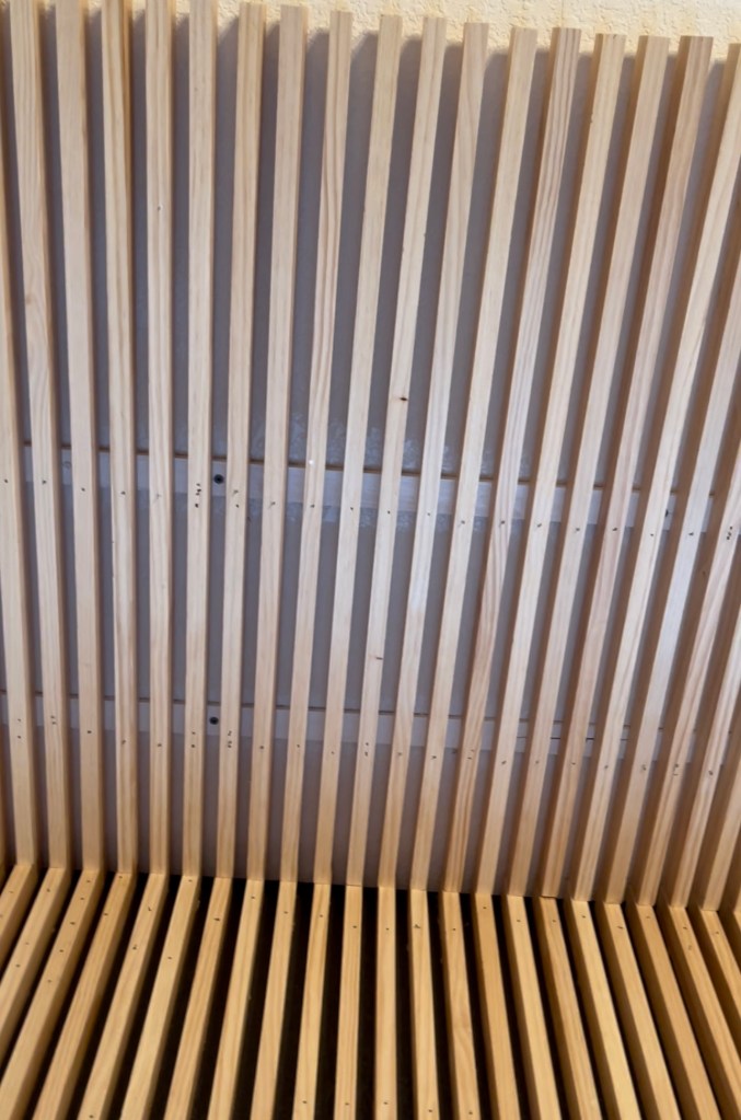 Using the same techniques as we did with the other sections we nailed the wood slats into the support beams.