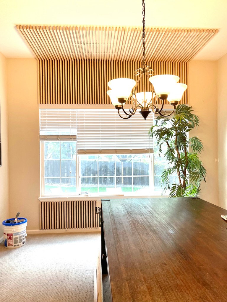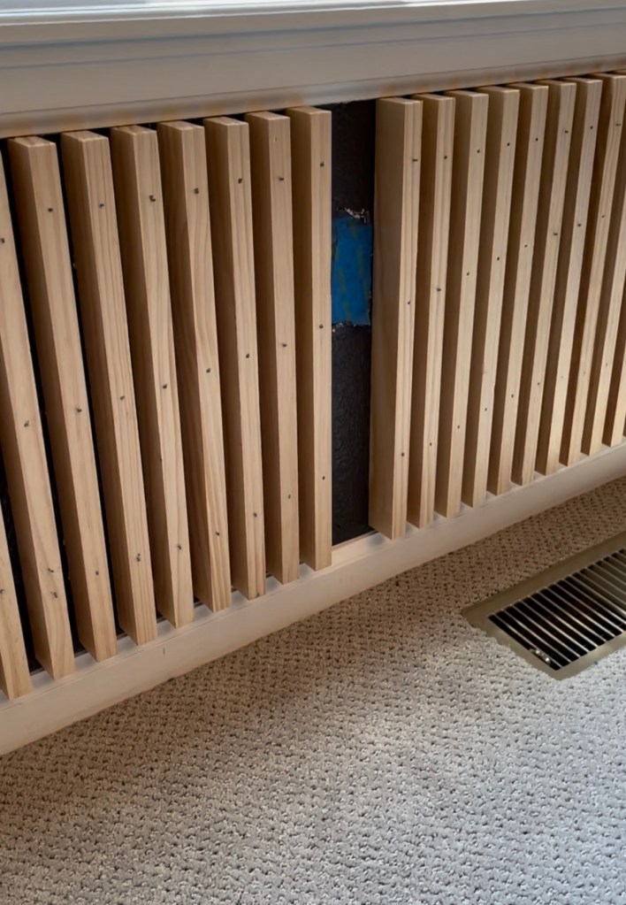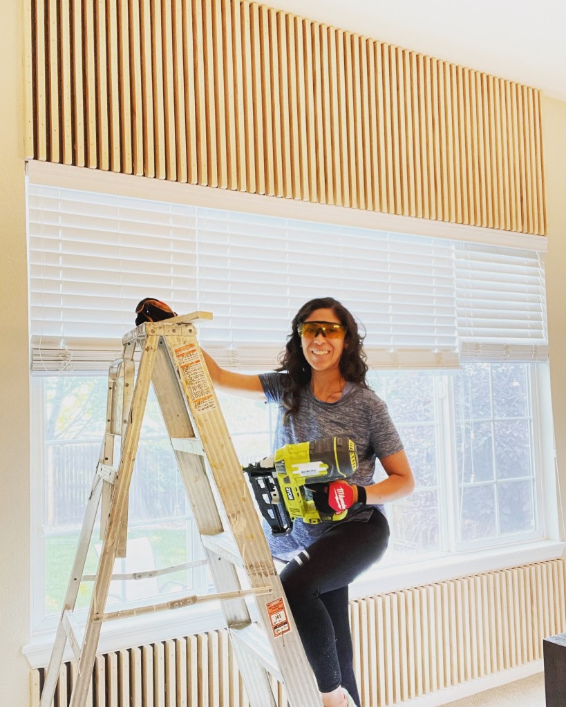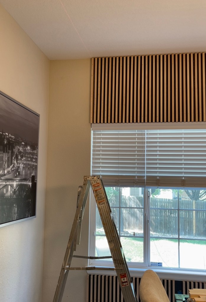 I started on the section below the window sill. It is important for the first slat to be level because it will be the base for all the other wood slats we do.
