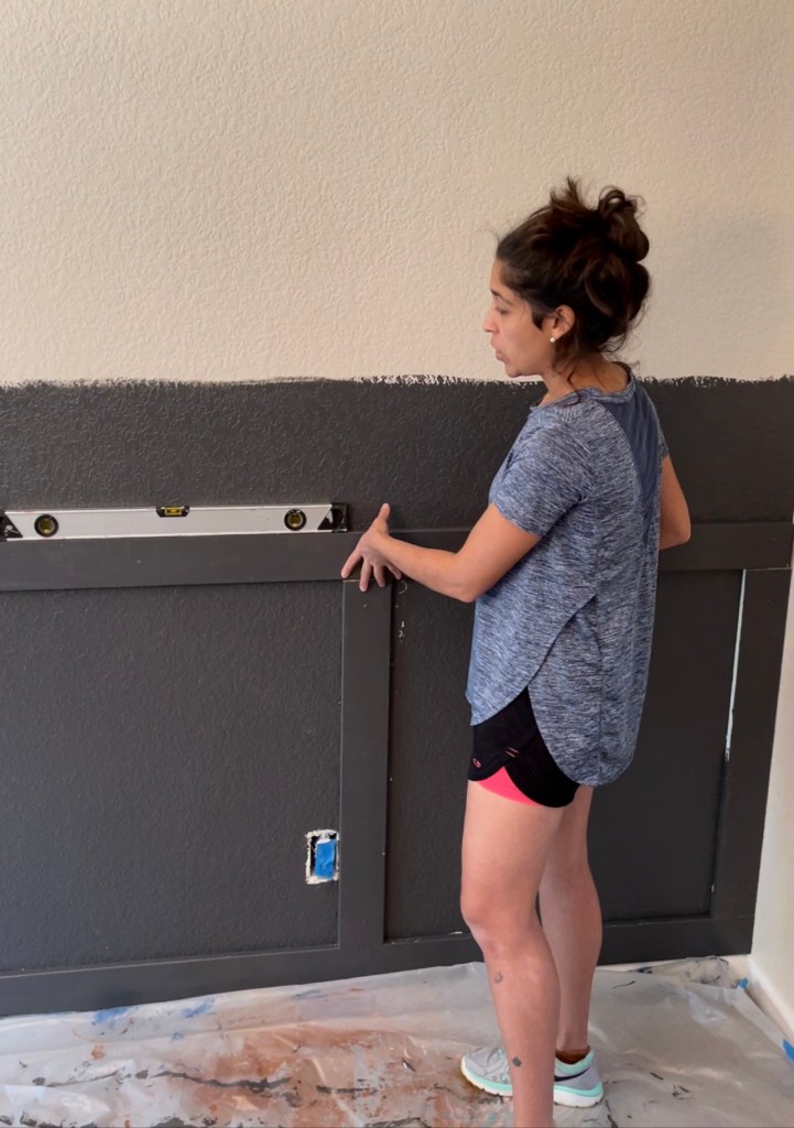 Now that we have all of our supplies and painted the wall and the MDF boards in the previous section How To Install MDF Paneling To Get A Beautiful Wainscoting Look Part 1: Measure, Getting Supplies and Painting we are ready to start cutting the MDF Boards to all the sizes we need on the wall.