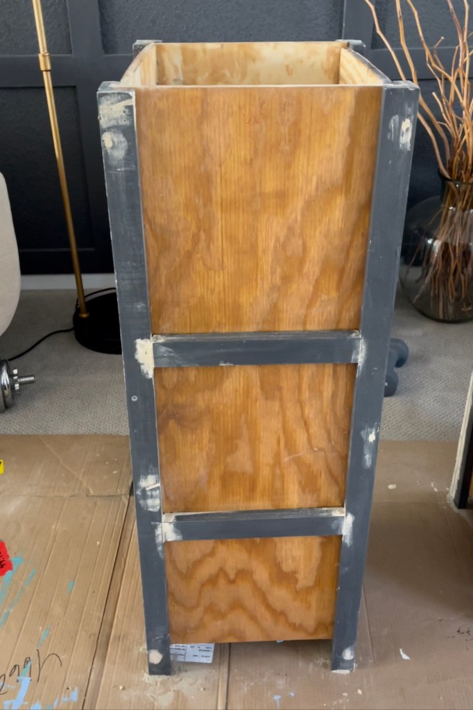 I filled in the small gaps in the joints where the wood pieces met with wood filler. I let dry and sanded the excess with a small sanding block. Then I touched up the paint to create a more seamless look.
