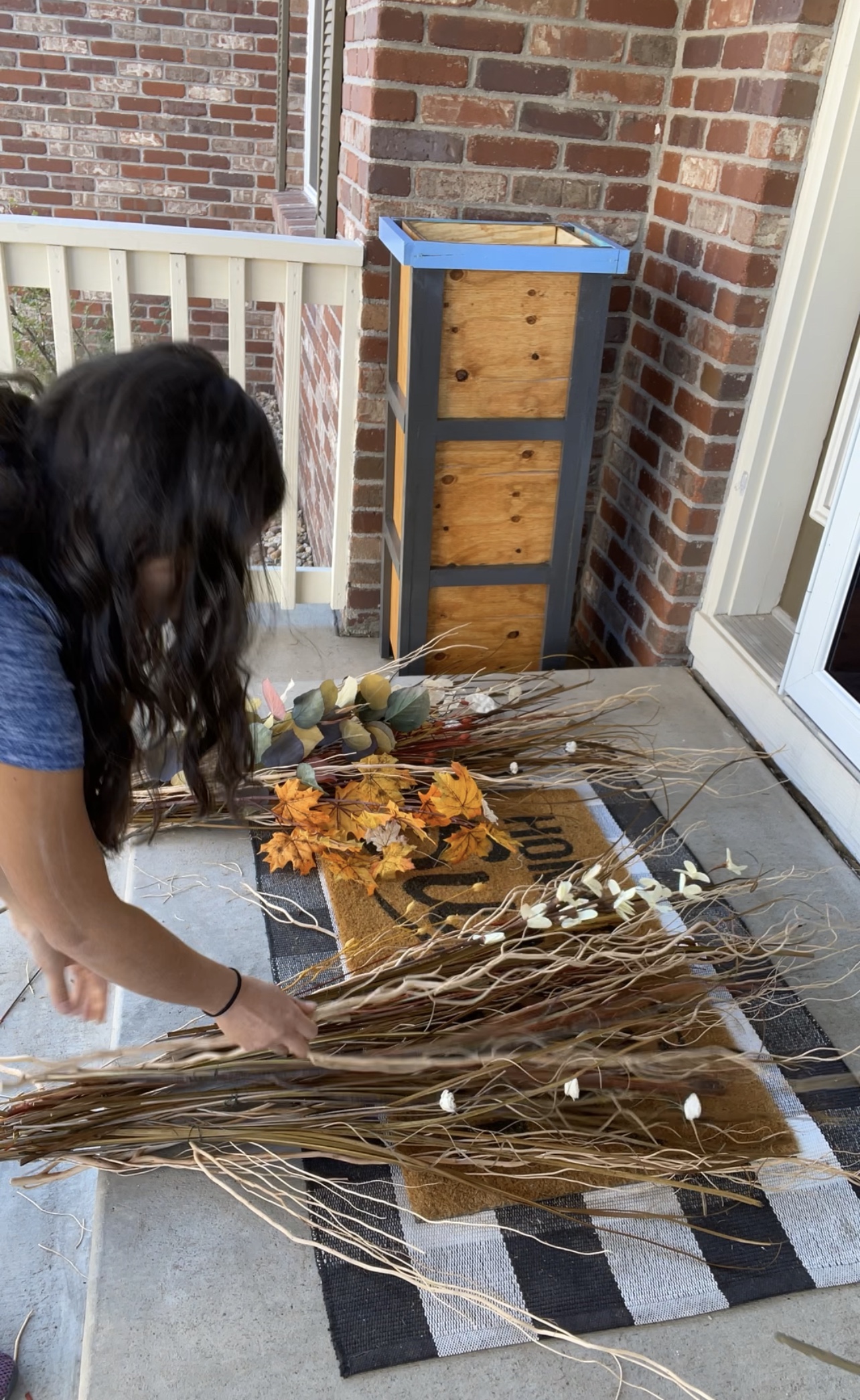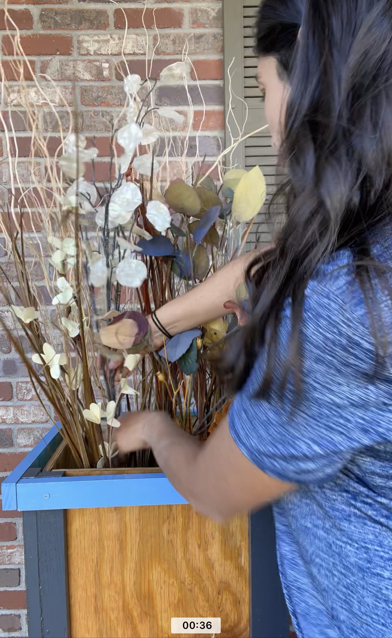I created the floral arrangement outside of the planter first for each planter first before I put them in the planter. Once I arranged the flowers, I started placing them in the planter keeping the same arrangement. This way I can make sure I liked the arrangement before I placed it in the planter.