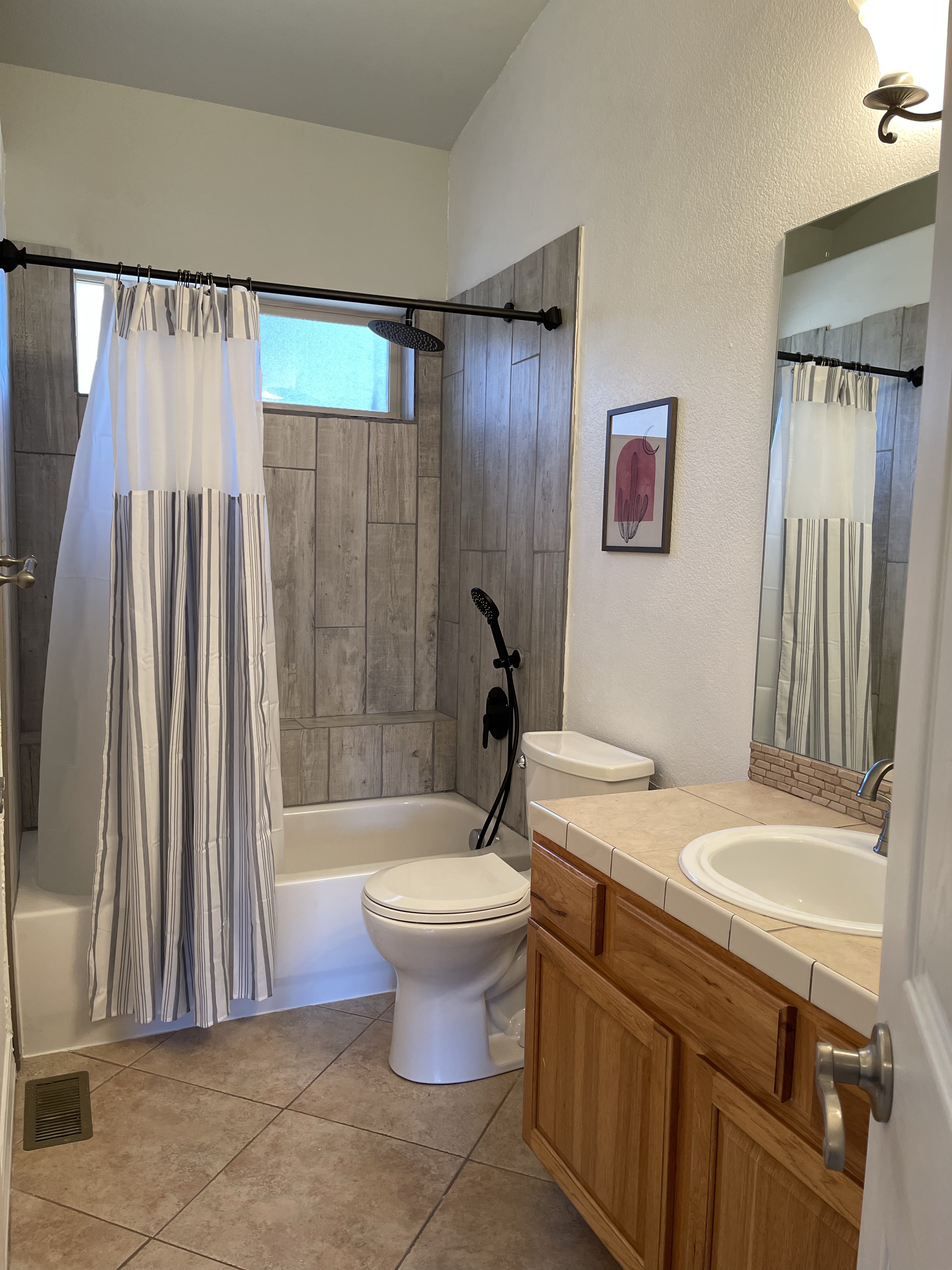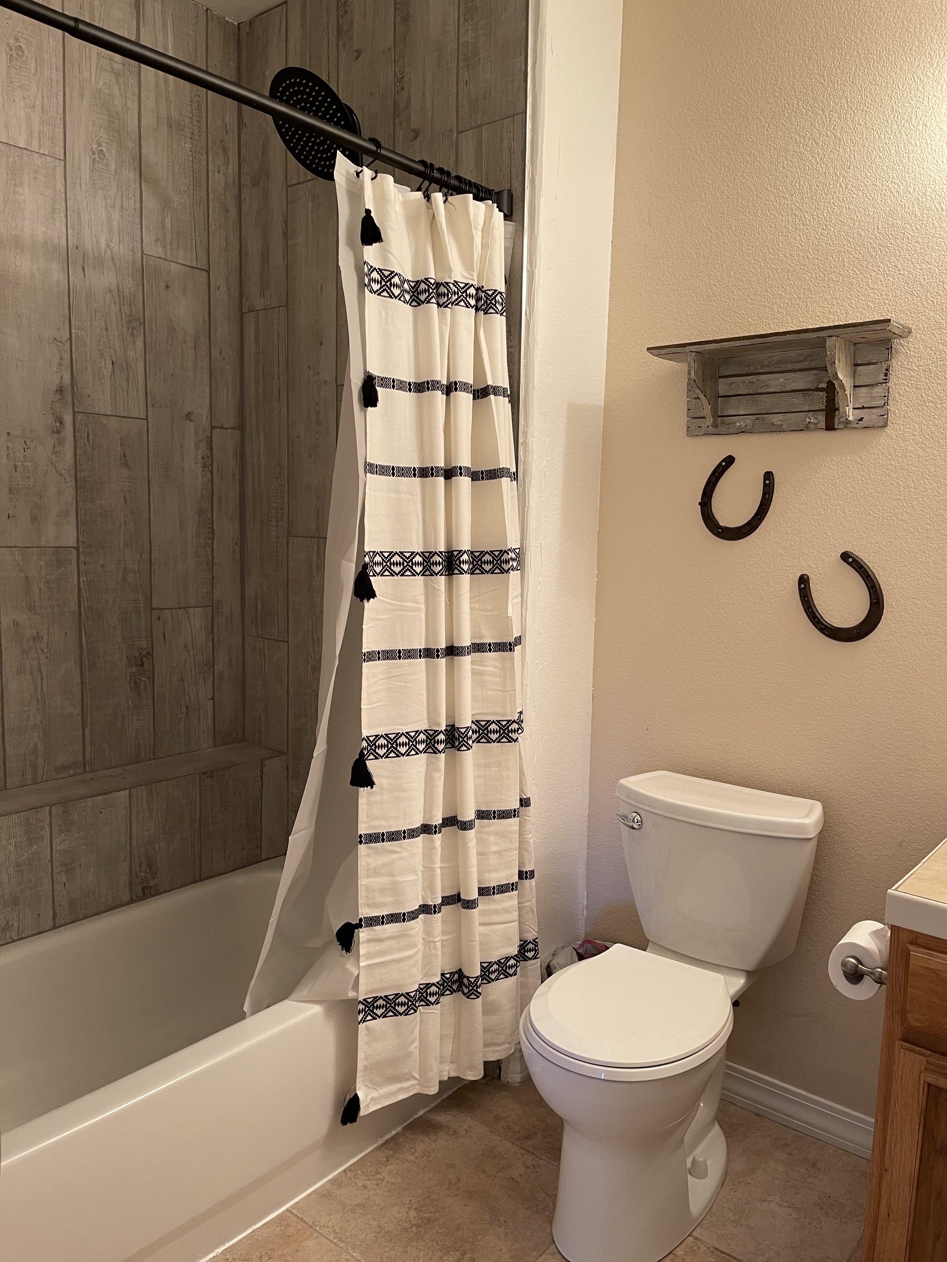 We finished up installing the shower heads and tile and adding some décor in the bathrooms.