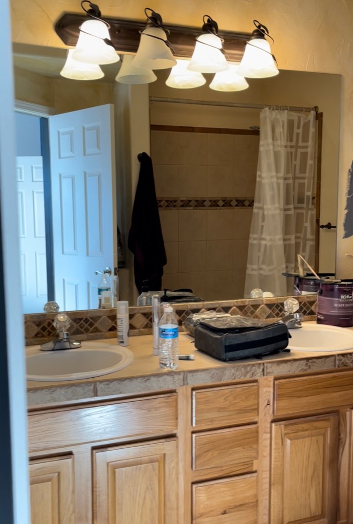 The master bathroom was yellow with a weird texture so I repainted all the yellow a greyish blue and it looked so much better.