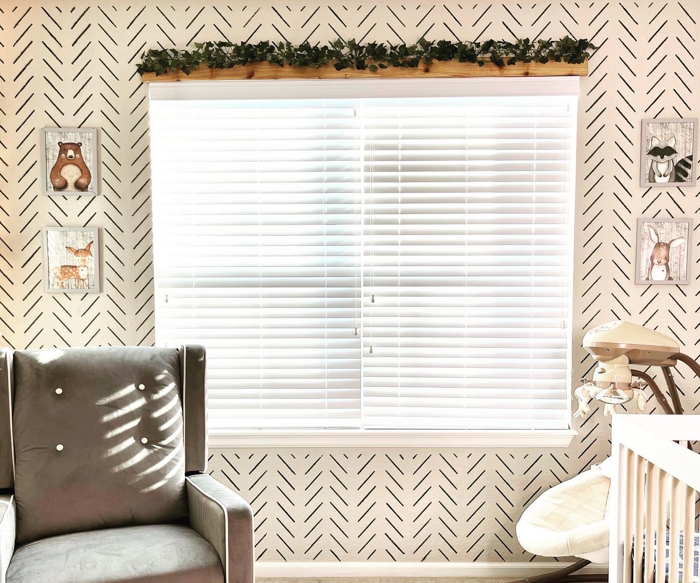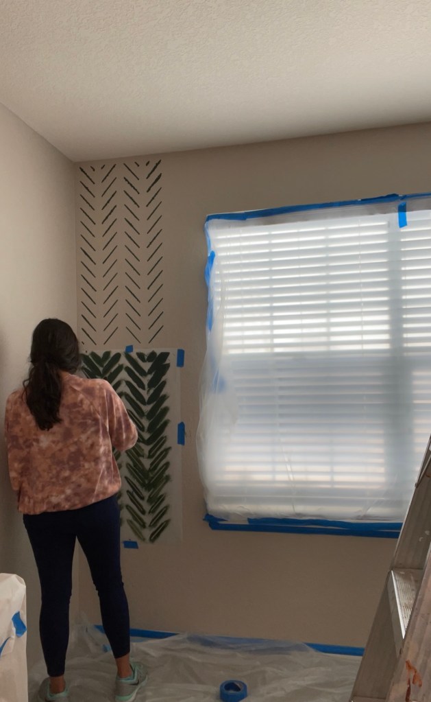 One of the projects I did for the Baby’s Room was painting an accent wall. I used a herringbone stencil that I found on Amazon.
