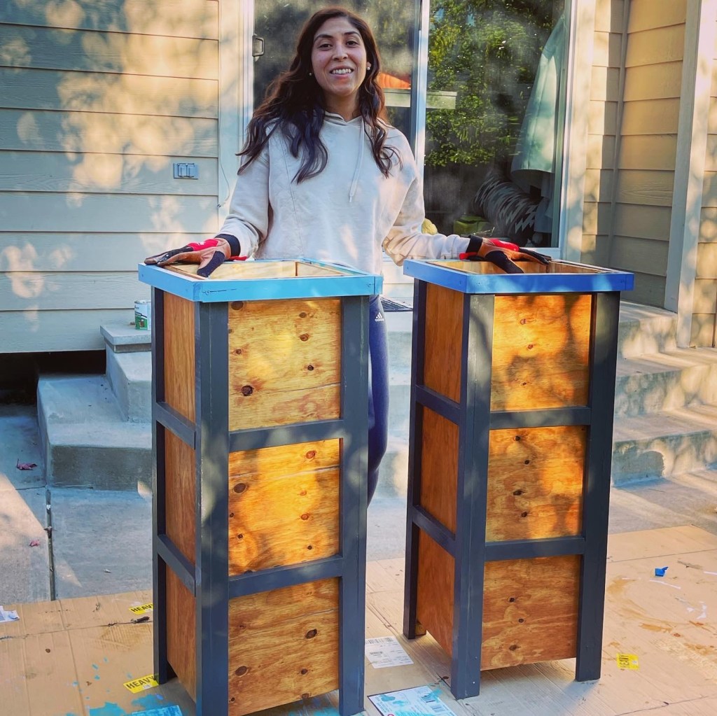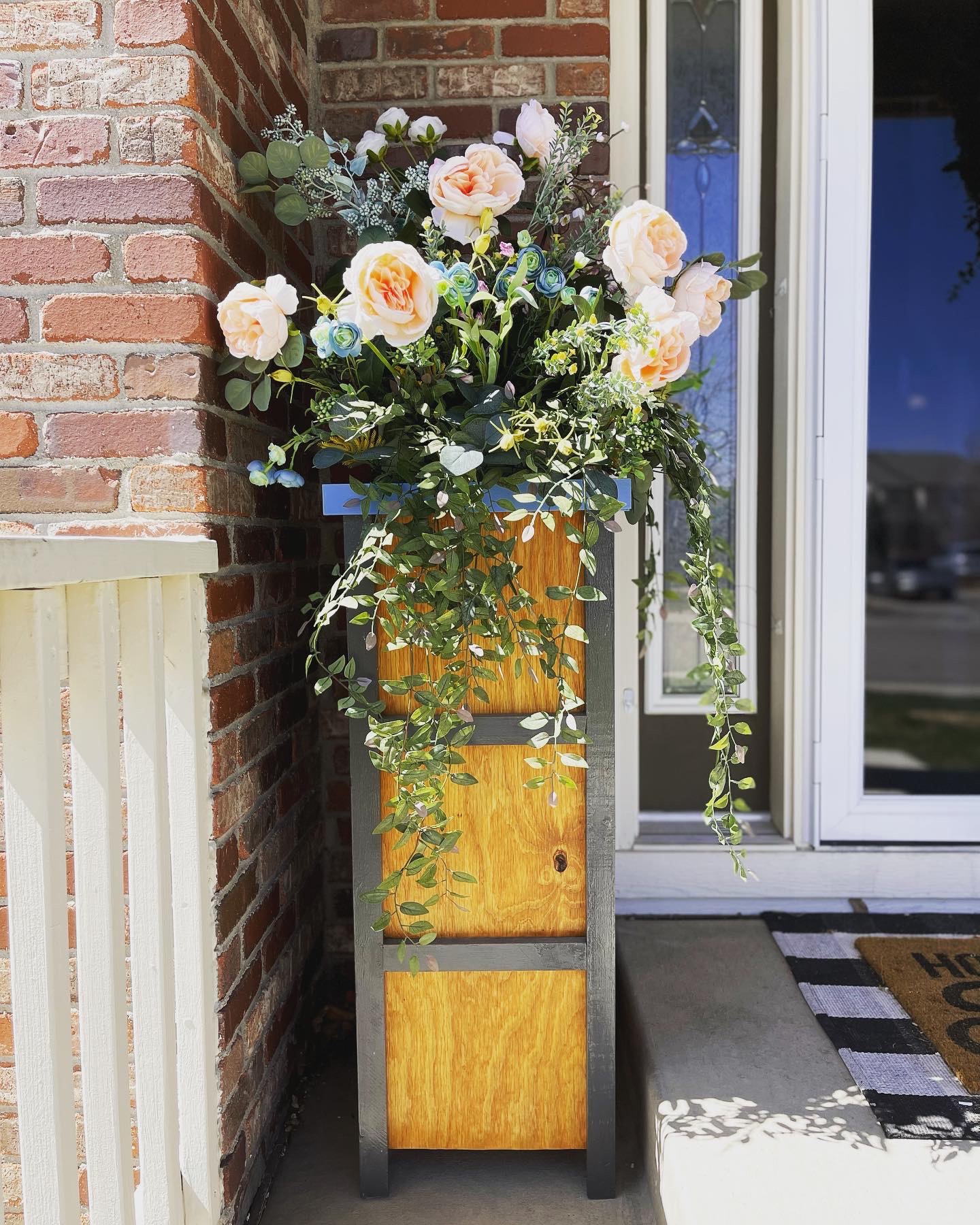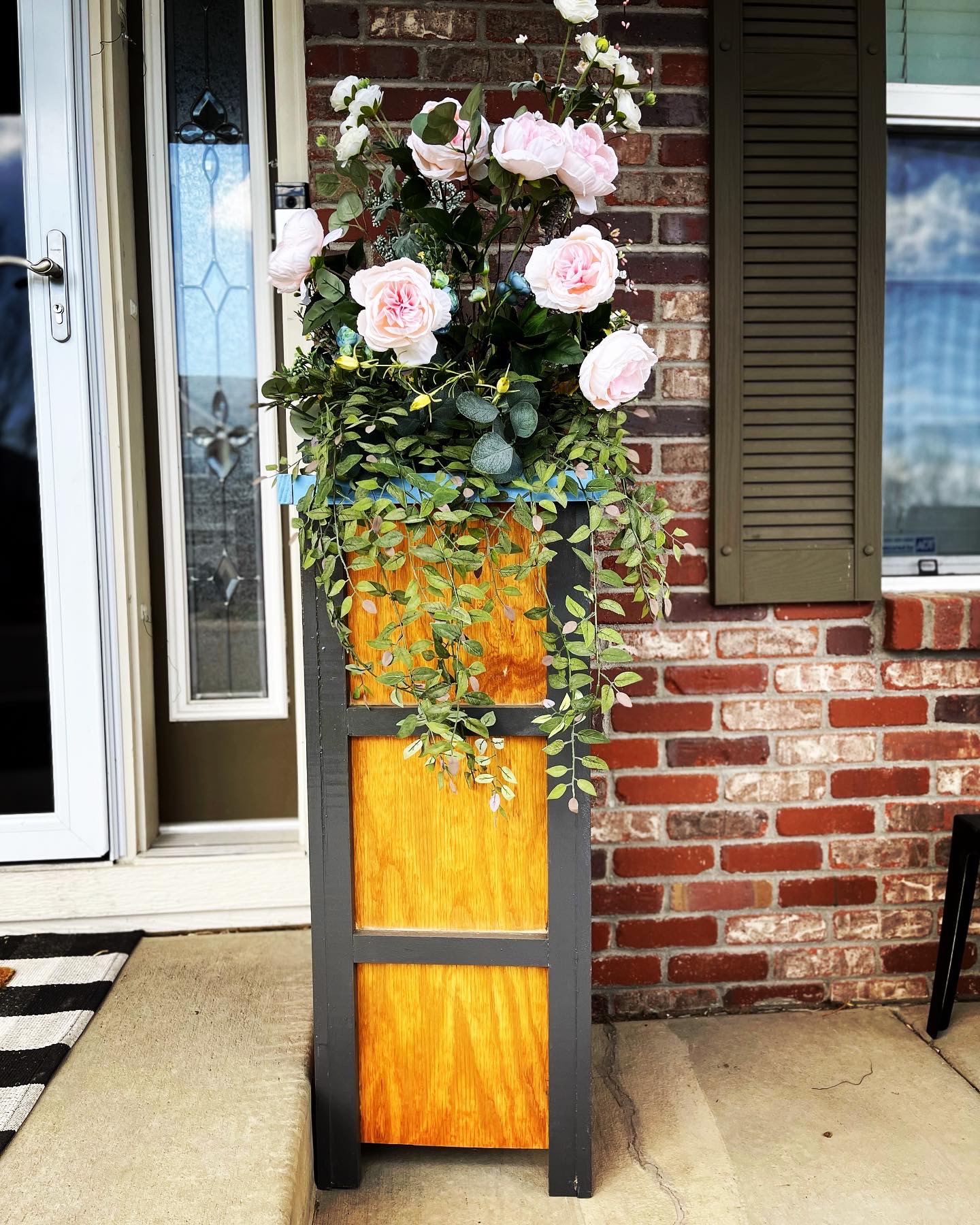 When I made them I was worried that they would be too tall and would blow over. I even made a compartment in the planters to add weights. Luckily, I haven’t had to use it. I am really proud of this project because it has withstanded all the weather and wind we get here and they still look great.