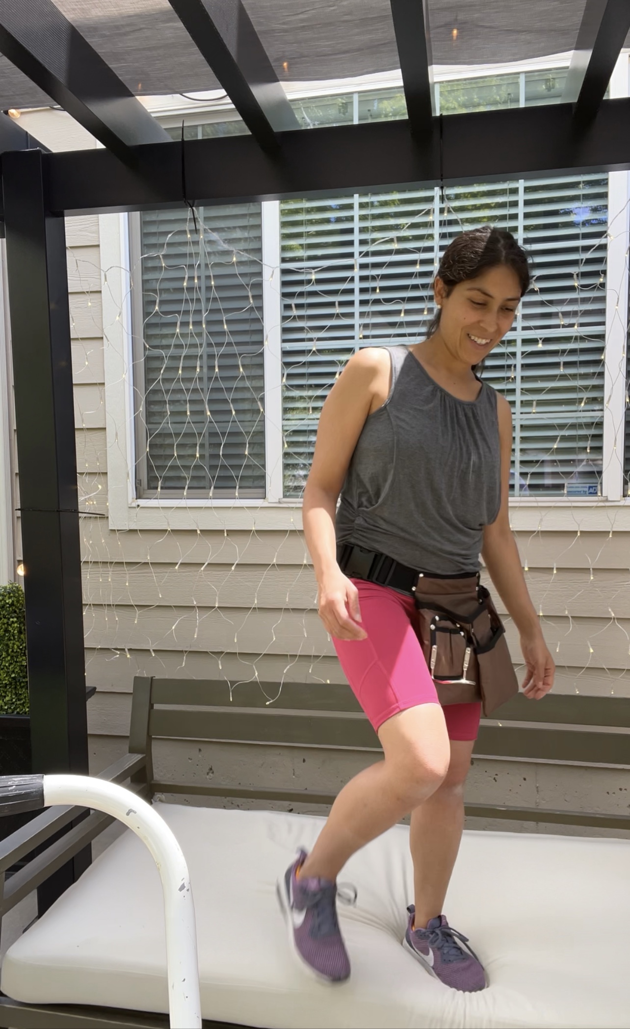 I had a net of string lights, so I attached those to the back of the Pergola to make them look sort of like a curtain. However, I realized after I did this that whoever is sitting there could get their hair caught in it so I instead nailed in hooks to attach them to the back of the wall.