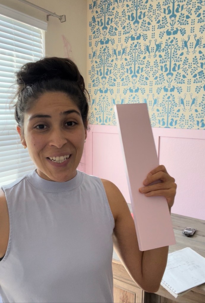 After each time I cut a board from the previous step Home Office Upgrade: Week 3: Cutting MDF Boards and Painting I labeled the board I cut to its corresponding wall and cut length so I could match it up with my chart and drawing. This way I wouldn’t make mistakes on where to put the boards.