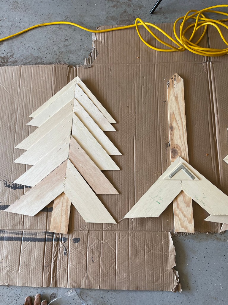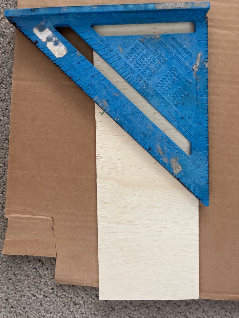 I cut a 40 degree angle on the opposite side of the 45 degree angle of each branch. Cutting the tips made the tree shorter so I remeasured to make sure they were still taller than 24”