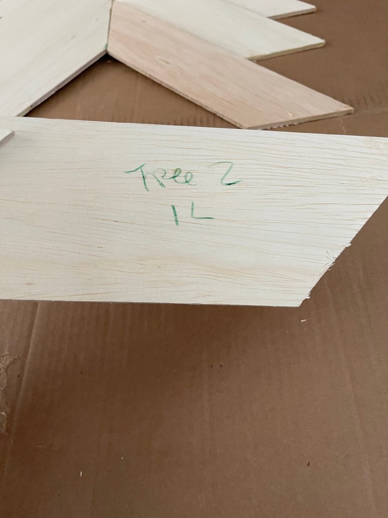 This is the most important step. Once I had my pieces selected I labeled all the pieces of my branches. I labeled them by if they went on the left or right and which order number from bottom to top. It’s super easy to get confused and cut the wrong thing when you are doing this type of project