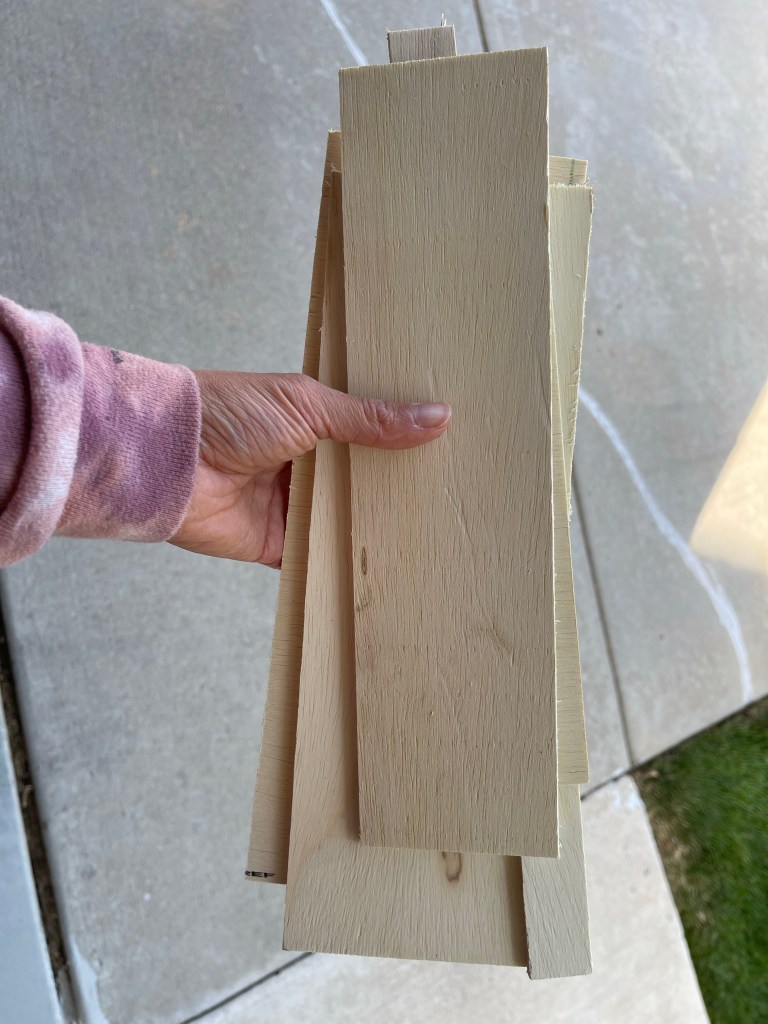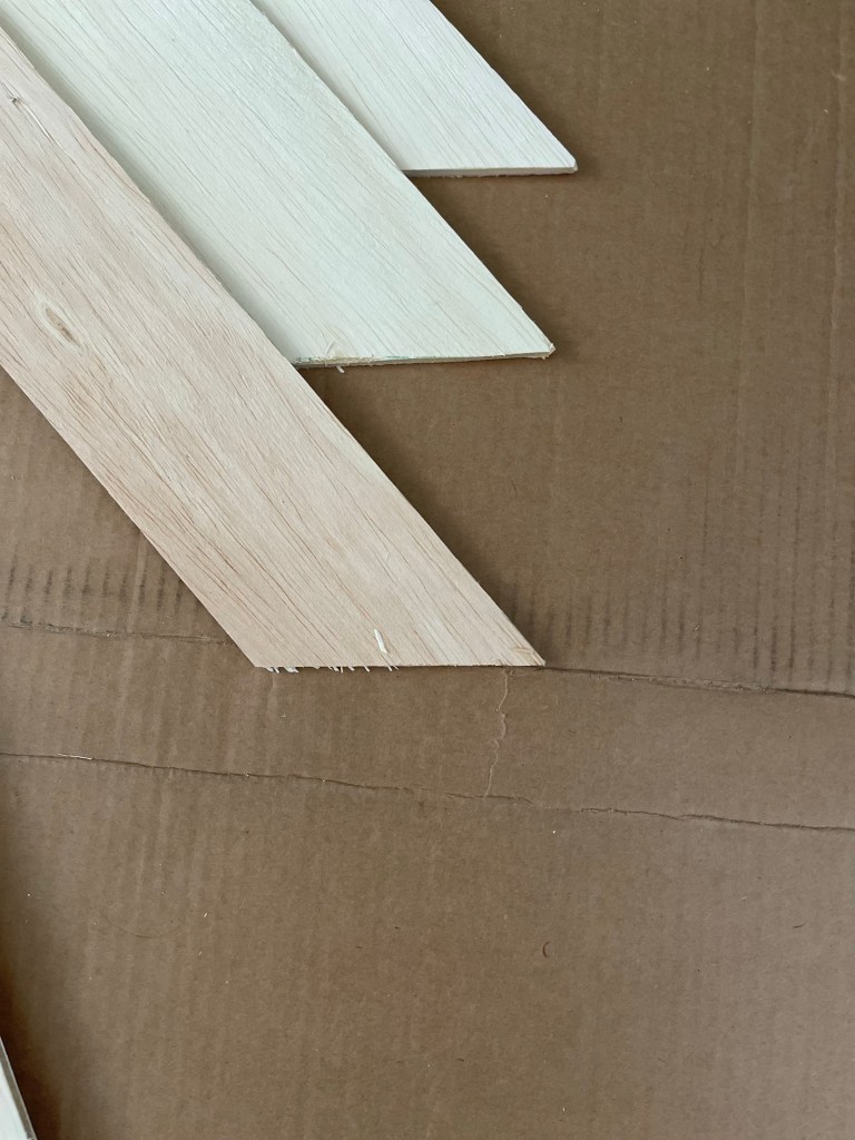I used the regular common Plywood board and cut four 3” strips in order to make the tree trunks.
