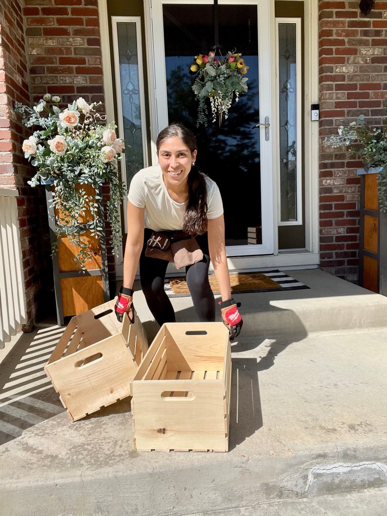 Since I wanted these bins to be taller, I stacked two crates. I removed the bottom slats on the top crate.