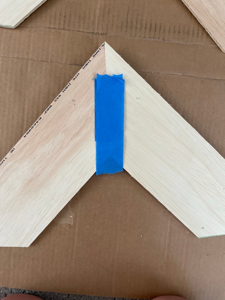 I laid my pieces together how I wanted to make the trees like a puzzle. I used painter’s tape to hold them in place