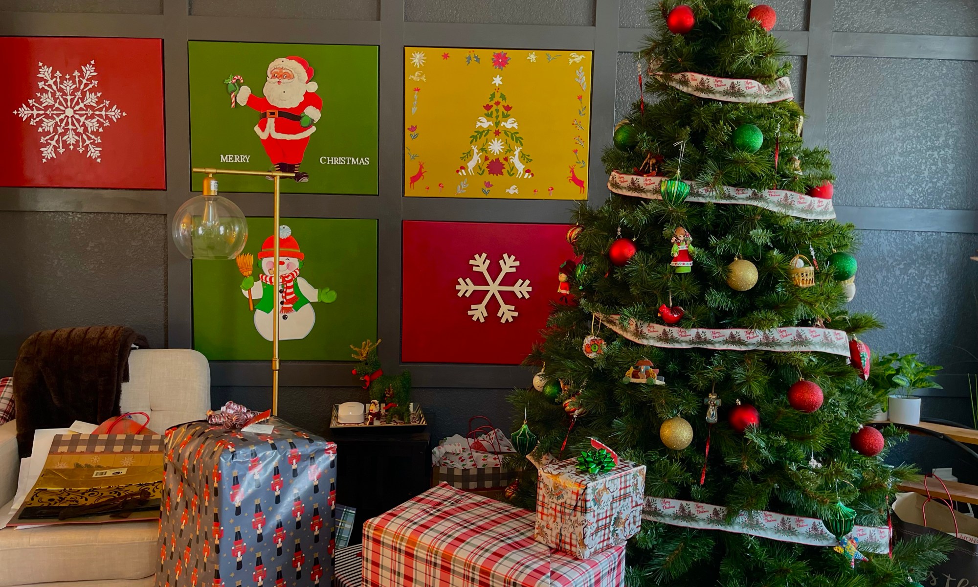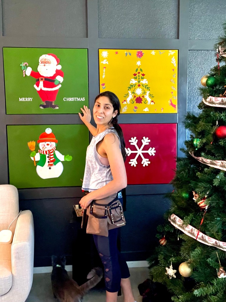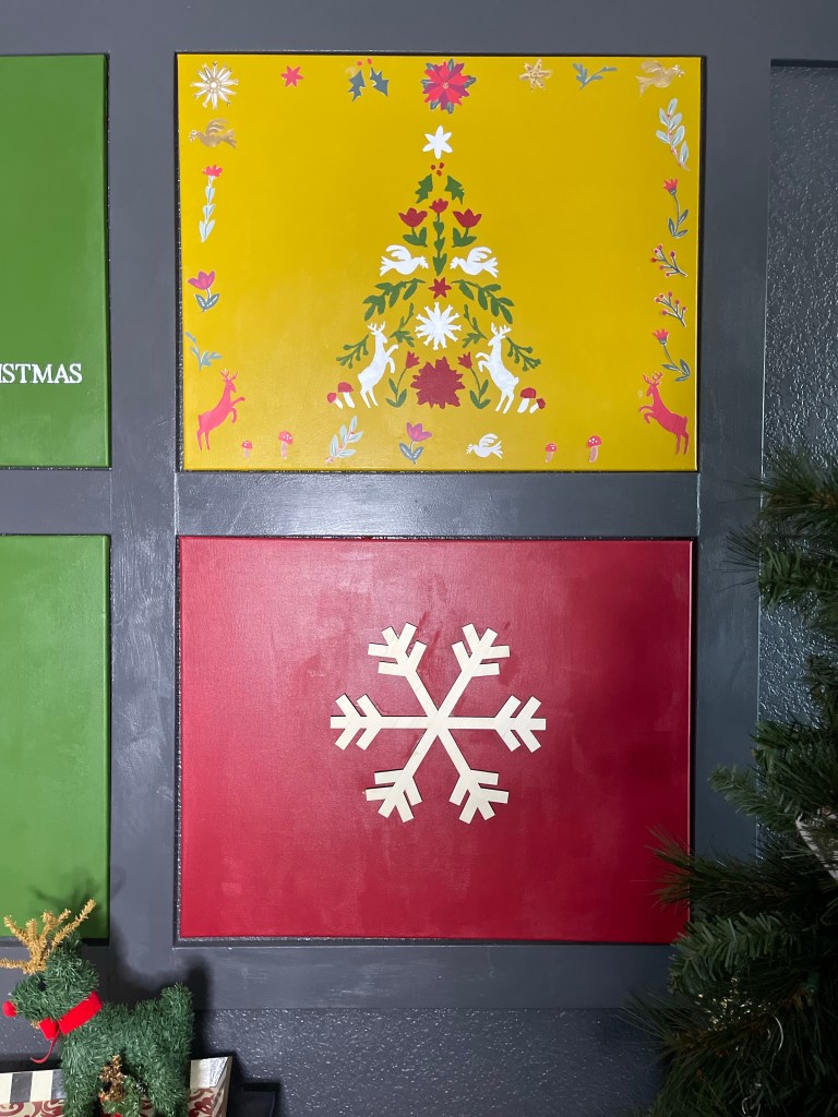 This year I am decorating my sitting room with a Vintage Christmas Theme. I decided to decorate the MDF grid wall we made in our sitting room How To Make an MDF/Grid Wall . I always thought it was difficult to decorate the grid wall since its already an accent wall it’s not really meant to be decorated more so I came up with an idea to add Christmas prints that fit within the squares.