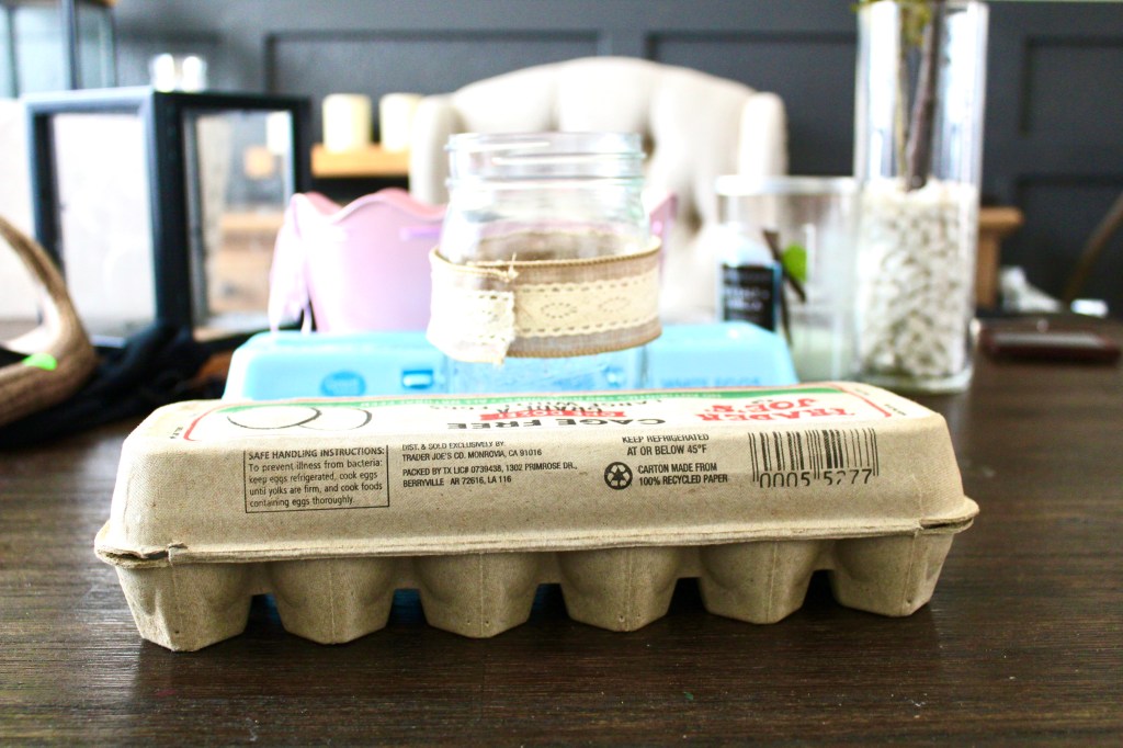 In order to measure the width, I took two egg crates and the mason jar I planned to use and measured the width across. That number was 8.5in