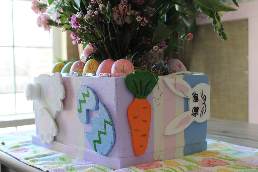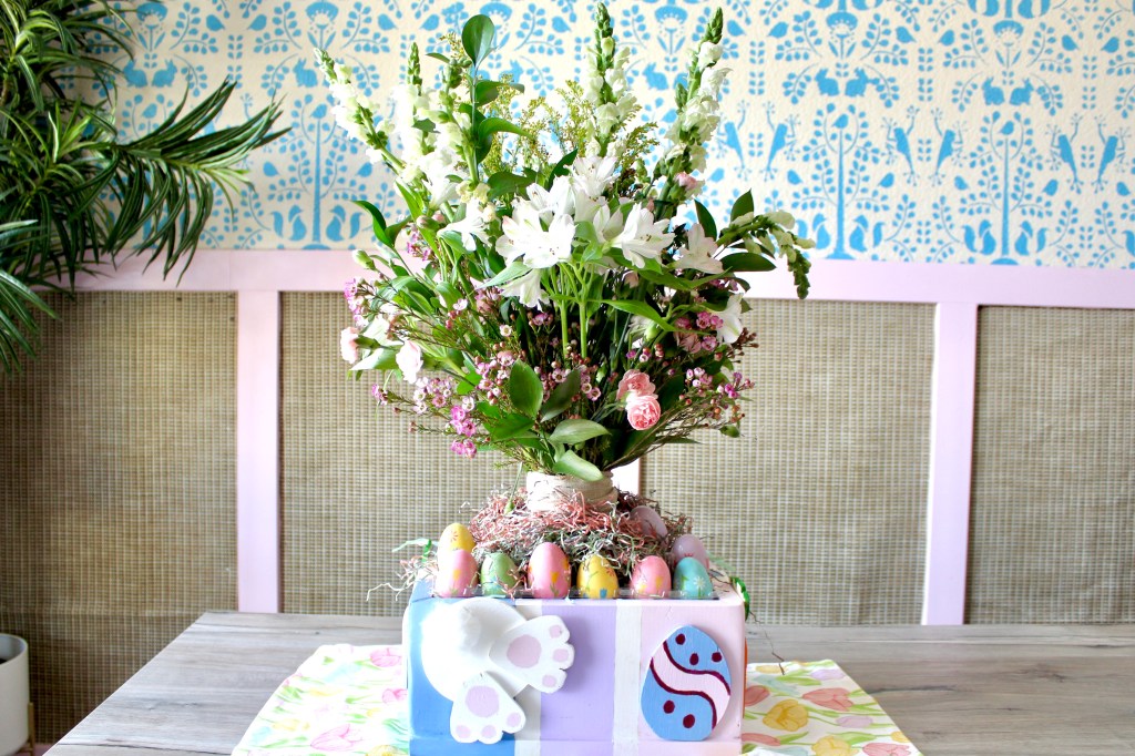 One of my favorite parts about Easter is painting eggs. However, after all that hard work I need a place to display them. I wanted to create a fun and festive Easter centerpiece. I decided why not make the Easter eggs part of the centerpiece.